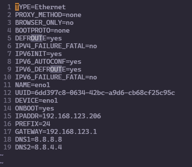 vi ifcfg-<network_interface_id> # ex) ens33, eno1 등