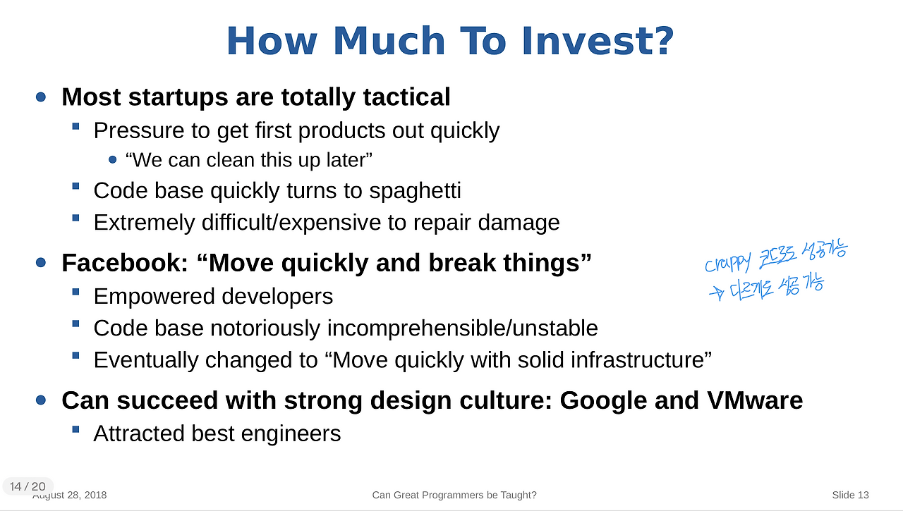 망가진, crappy한 코드로도 성공은 할 수 있다. 하지만 그러지 않고도 성공할 수 있다. Google, VMware는 그러지 않고도 성공했다.