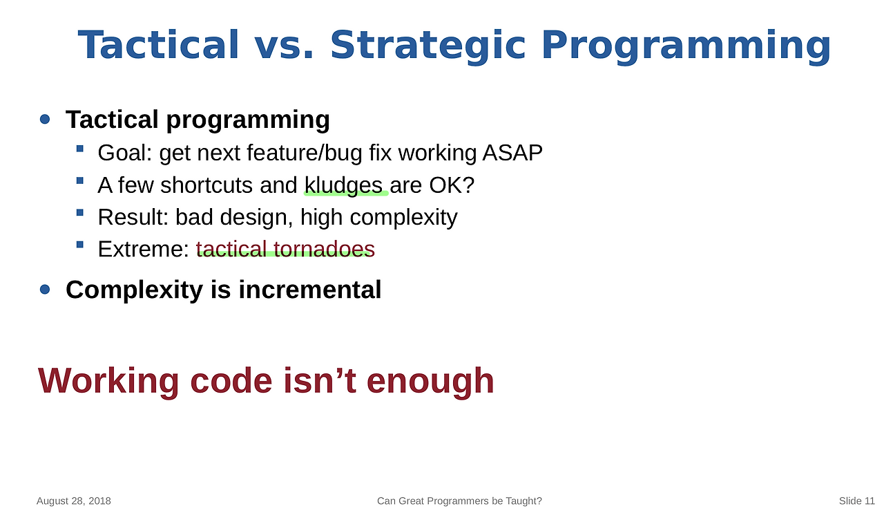 작동하는 코드는 단 하나의 목표가 될 수 없다. not single goal, table stakes